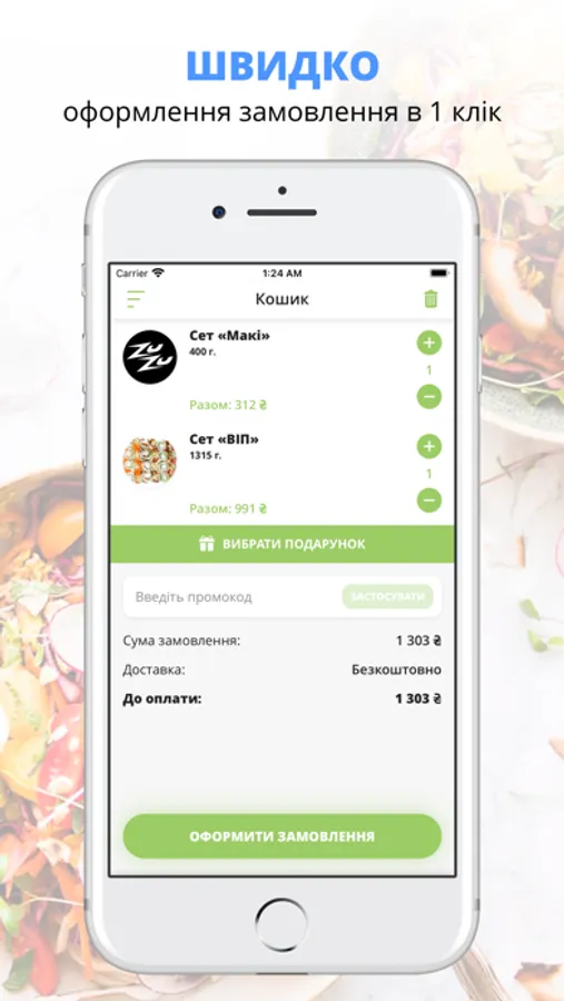 Скачивайте наше приложение, оформляйте заказ и наслаждайтесь любимой едой, где бы Вы ни были! Приятного аппетита!