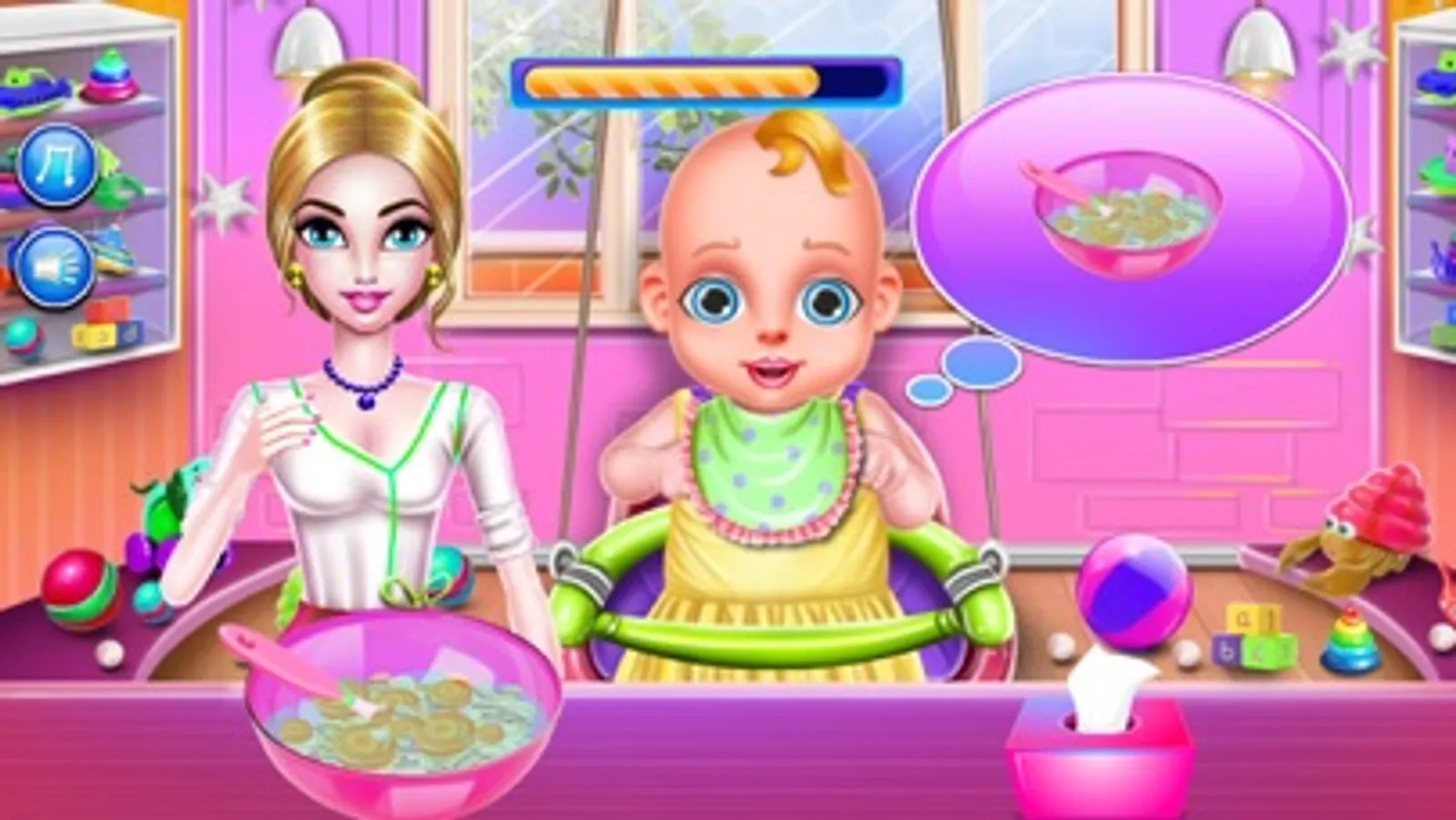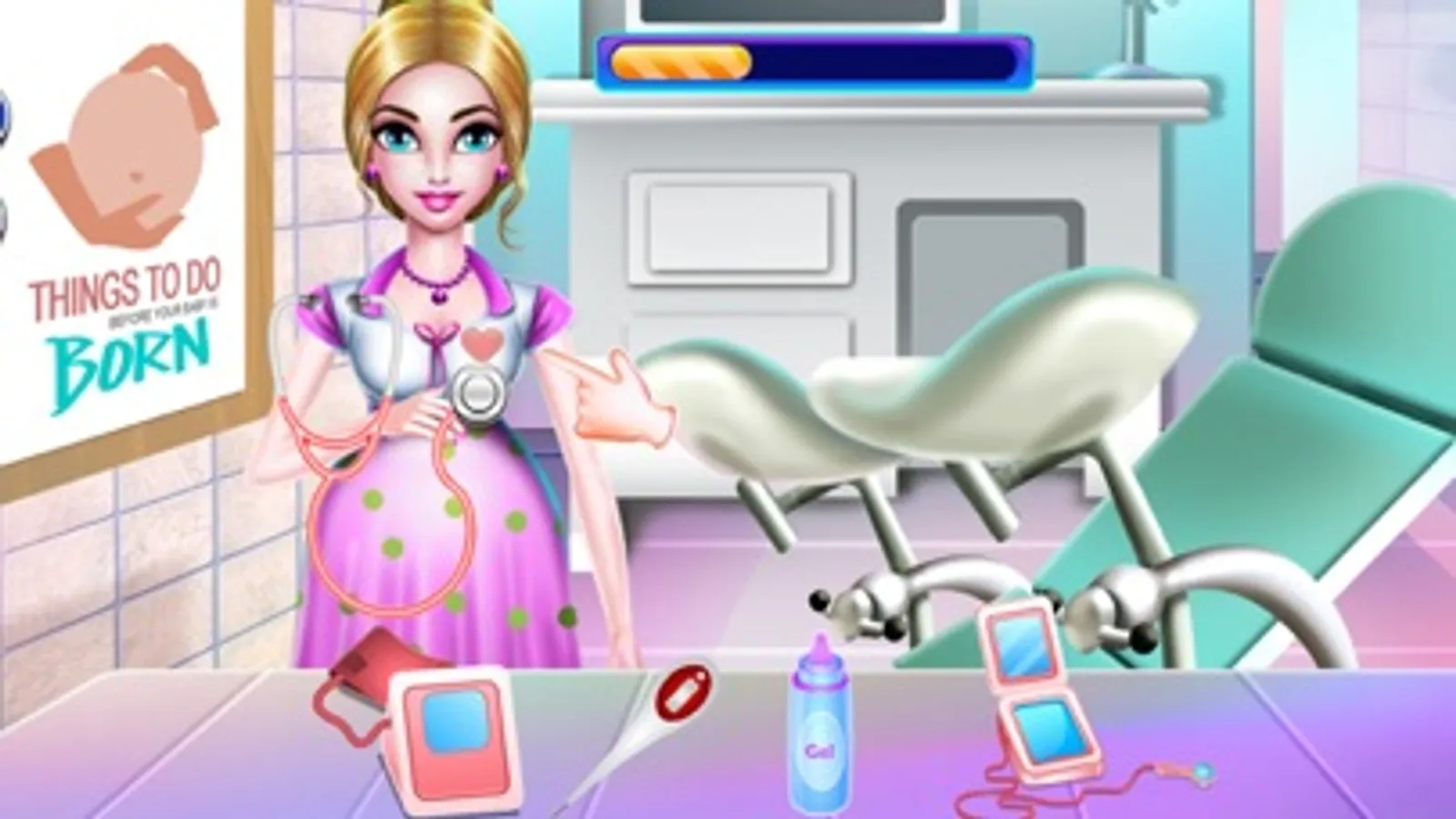 First of all meet a beautiful mommy who is last month pregnant and the baby will born in a few time. This cute mommy needs you to be arround her and help with last activities before giving birth. First she wants to do some morning exercises and then go to the hospital for the last check up. Be a good doctor and use medical instrument to make sure that mommy is healthy. After it the baby borns and there are many challenges you should complete so let's descover them.