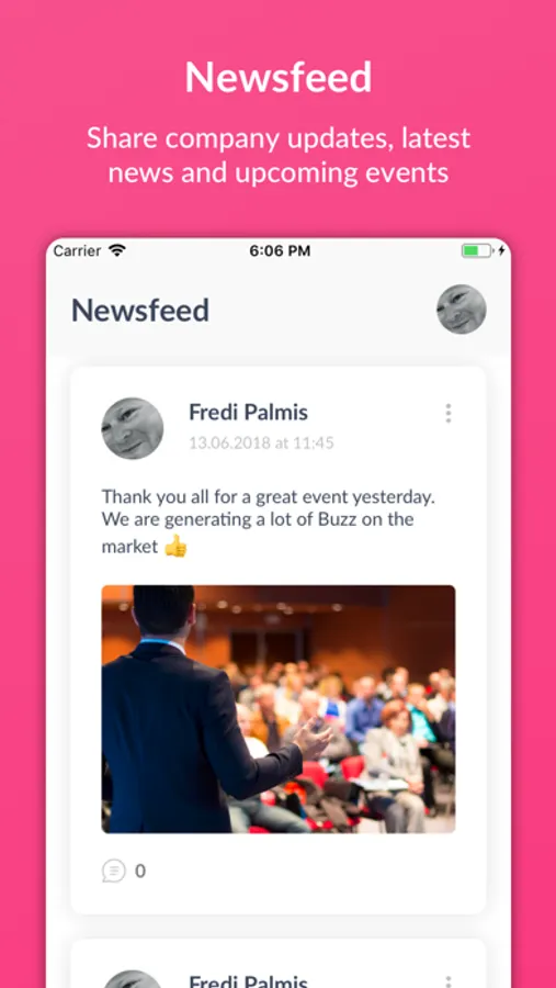 Newsfeed to broadcast company-wide information to all the team members you have.
