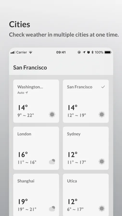 Mr. Weather combines a couple of world top weather forecast data providers. So you can add cities all over the world, and check the weather in multiple cities at one time in Mr. Weather Cities view.