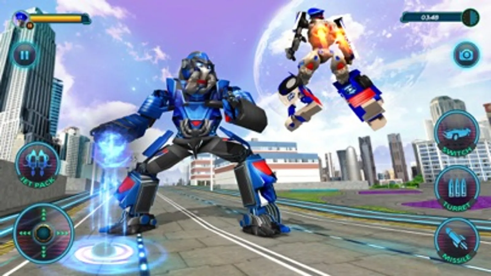 Cops Robot Battle is Robot fighting game in the new city and the whole organization of evil robotic powers is fighting to destroy the city. Let's fight back with flying war machines in the robot battle city to demolish all rebellious red robots.