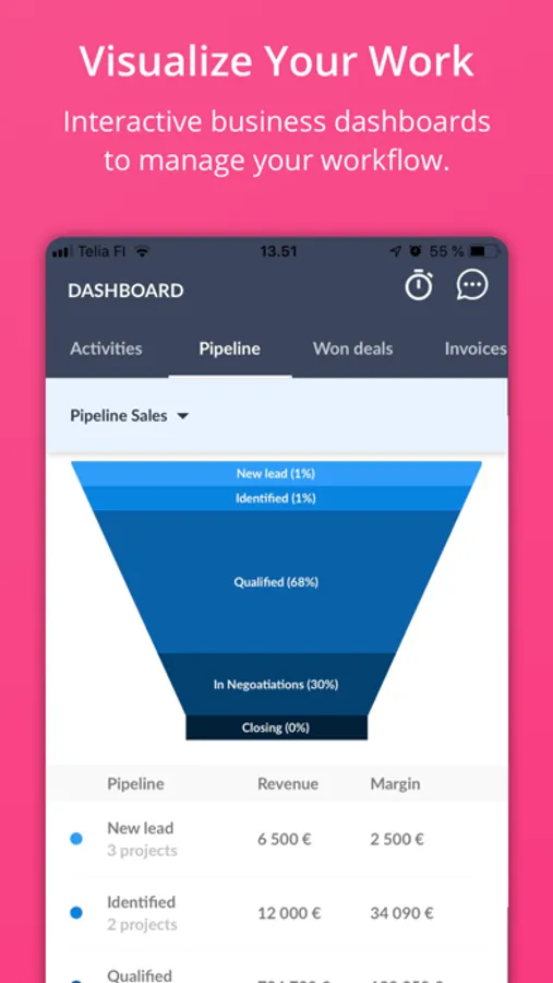 - Sales Funnel Management: visualize the sales process of your leads & deals.