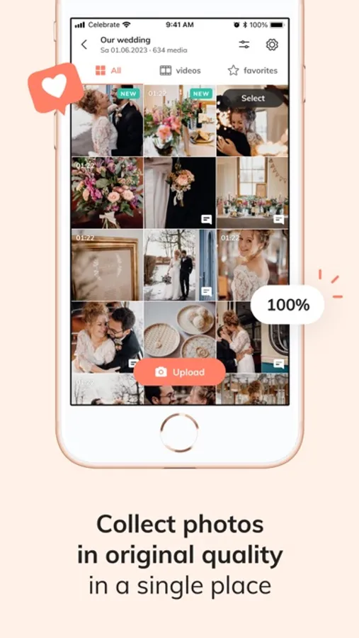Celebrate is the easiest way to get all those great photos in original quality - no matter if your partner, family or friends took them.