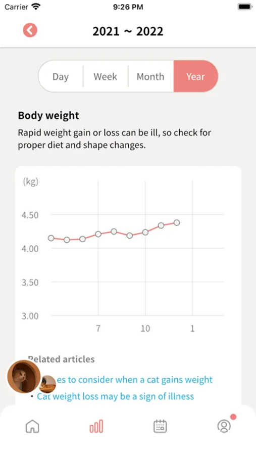 You are able to know your cat’s health condition with the data, it helps your cat to have healthier and happier life.