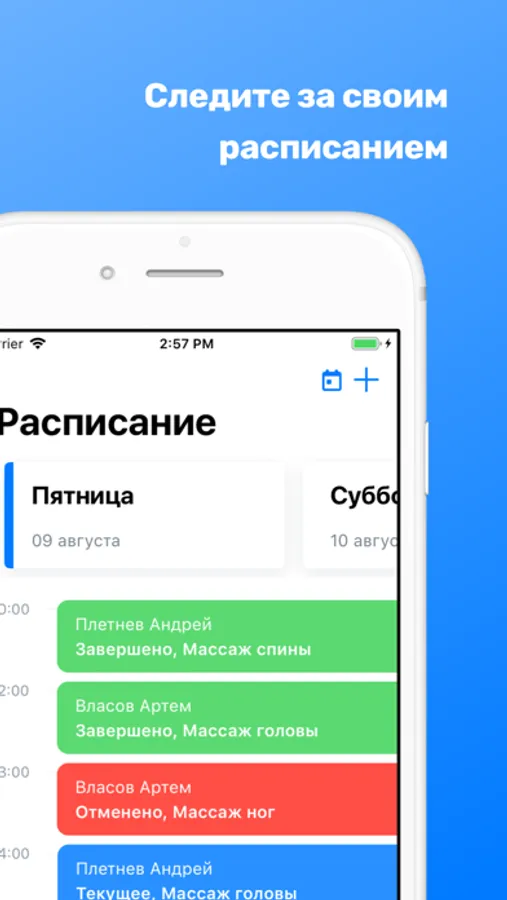 ⁃ Push-уведомления о предстоящих записях с возможностью регулировать время напоминания
