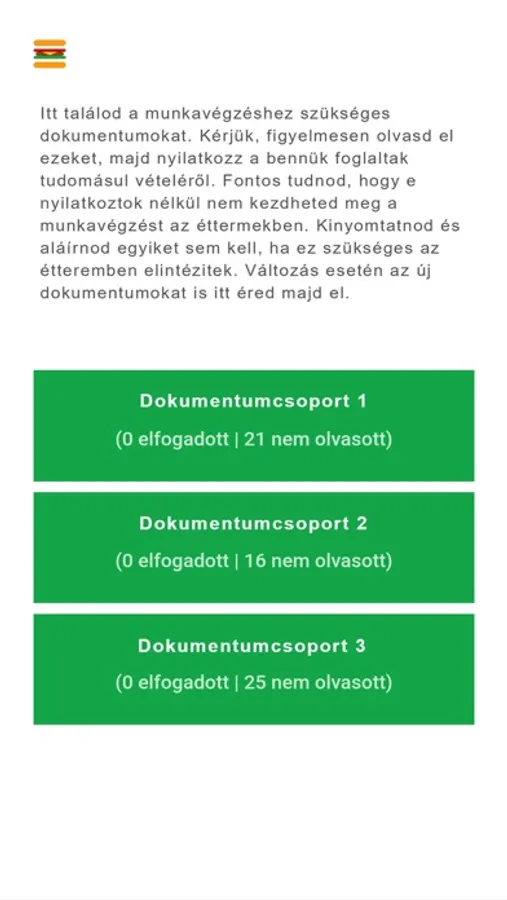 Ha a Fürge Diák legnépszerűbb gyorséttermi munkáját szeretnéd megcélozni, mindenképpen szükséged lesz erre az alkalmazásra. CSAK ezen keresztül tudod elolvasni és elfogadni a munkavállaláshoz feltétlenül szükséges dokumentumokat, szabályokat.