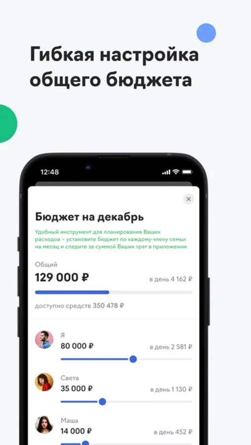 — устанавливайте лимиты расходов на день, неделю или месяц