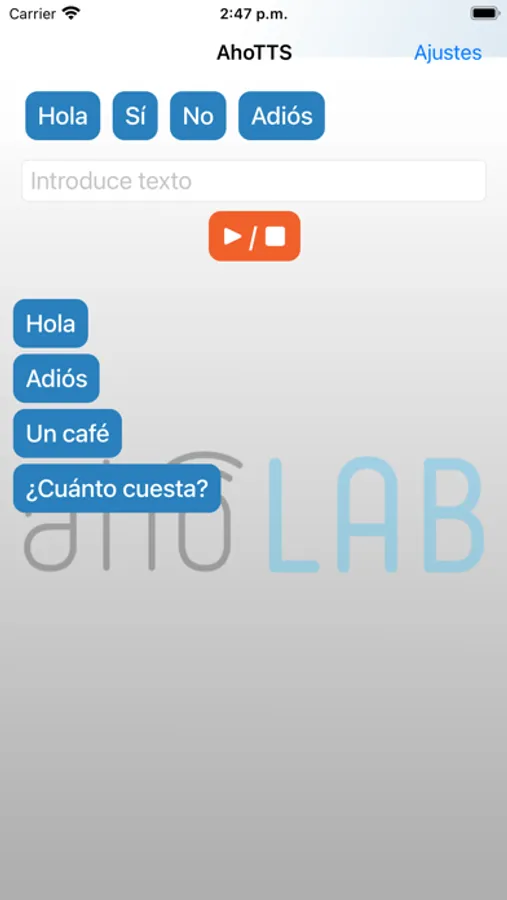 AhoTTS has a user interface which allows straightforward text synthesis and includes advanced features as shortcuts to usual sentences and utterance memory.