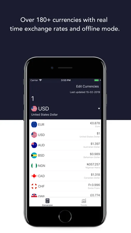 Currency Converter for over 180+ currencies with live exchange rates and offline mode. Setup your personal currency list and see all the important currencies at first glance.