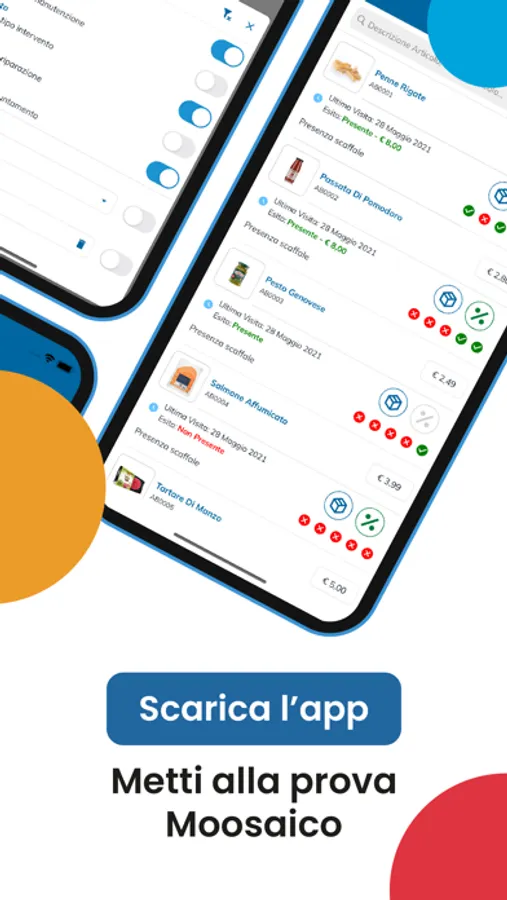 Moosaico X è un'applicazione mobile per la gestione e il controllo della tua rete di vendita e assistenza che, con un'interfaccia semplice e intuitiva, garantisce all'utente di operare in modo veloce e flessibile, con tutte le informazioni sempre disponibili anche in assenza di connettività.