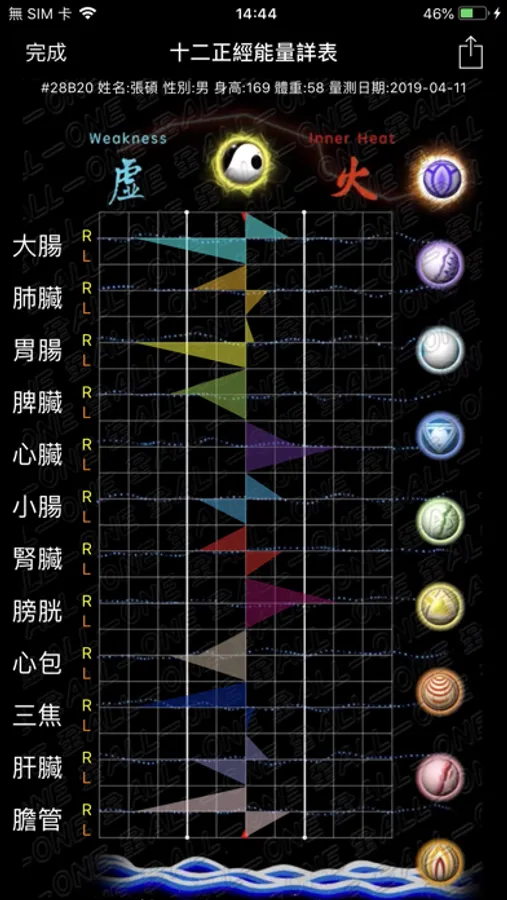 2.Twelve Meridian Energy Chart: Through the 12S dielectric parameters to see the change of weak and heat.