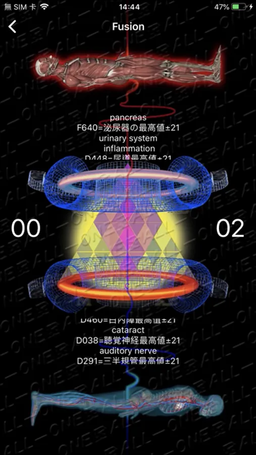 8. AR spectrum intervention: The measurement process is presented in AR. When the measurement is completed, the result will combine with FI spectrum and electromagnetic space sensing parameters to compare one million people and 54 billion parameters through cloud analysis to simulate the data of organ cell after supplying.