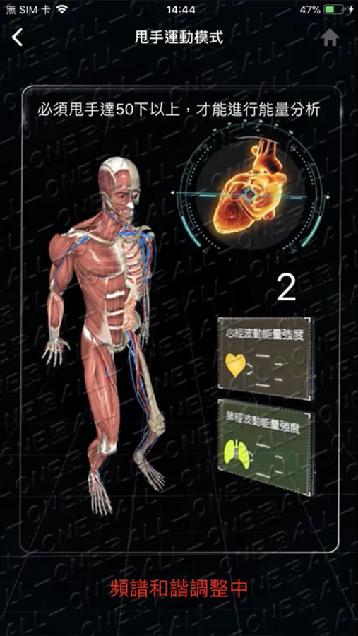 11-1 Exercise Mode: Each swinging movement and the amount of calorie consumed will transfer to ALLONE 275 device to record the dielectric changes in the meridian.