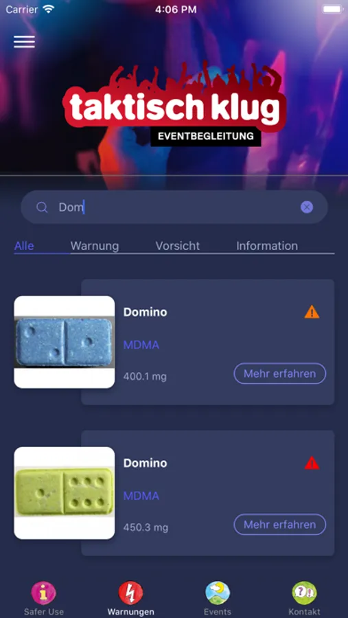 Substanzwarnungen aus der Umgebung und Informationen zu Safer Use dienen dir zur Minimierung von Gefahren und Risiken, damit du auch weiterhin sicher Feiern kannst.