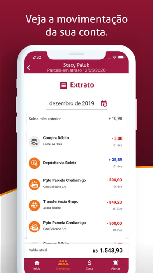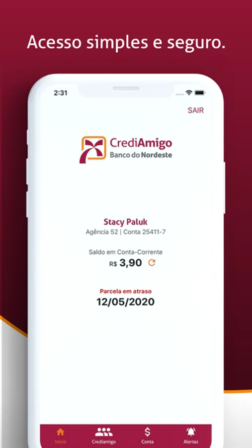 - As informações vêm direto da sua conta Crediamigo, de forma rápida, atual e segura,