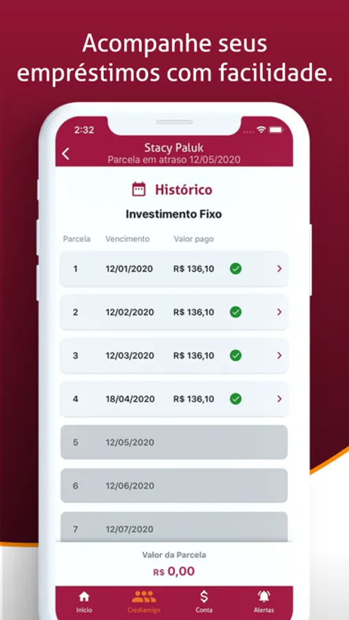 • Consulte os empréstimos feitos e os próximos vencimentos;