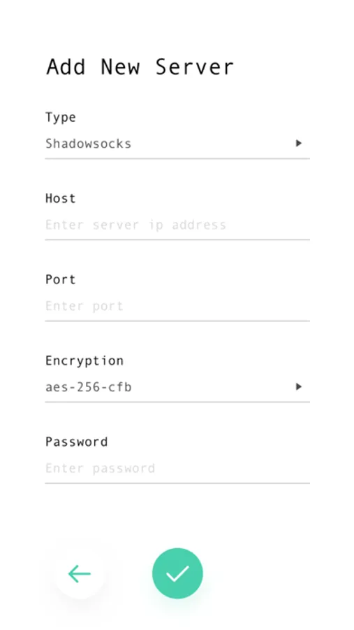 1、Please add server first: Click 「Add」and select「Manual Input」,then input your server info; (You can read the help to setup your own server)