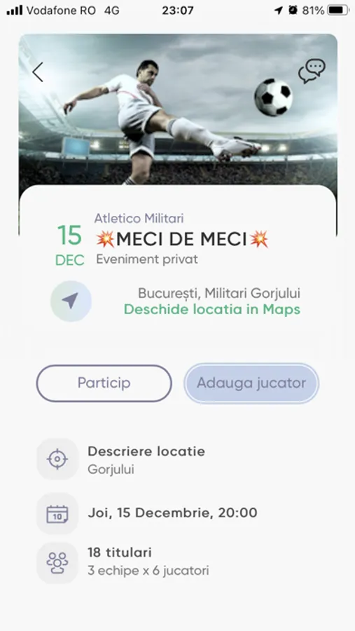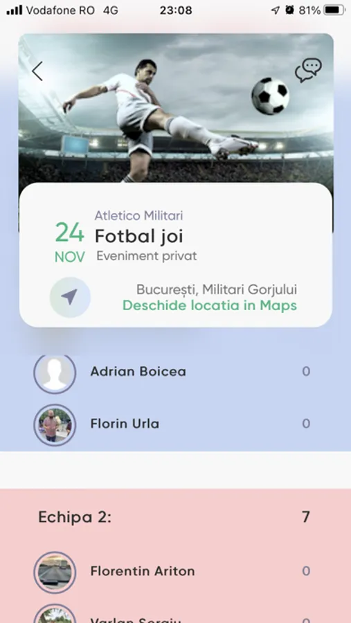 Aplicatia va ajuta sa tineti lista de participanti si de rezerve oferind astfel o imagine de ansamblu a evenimentului. De asemenea se pot realiza echipe perfect echilibrate in functie de valoarea fiecarui jucator din lot.