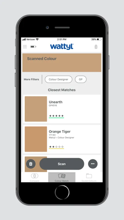 The Wattyl Match App allows you to keep your color scans, matches, and Wattyl paint color palettes handy on your mobile device.