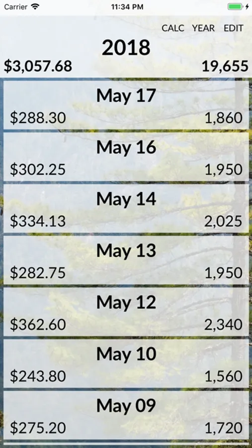 - Actively updates your total trees/earnings for your career and the given year on every bag up