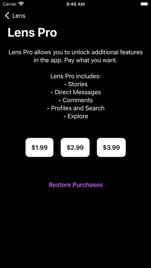 Lens does everything from liking posts, viewing comments, commenting on posts, displaying videos, searching for users, viewing direct messages, and more!