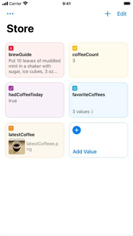 Data Jar is a data store designed to be used with Shortcuts. The data store lets you persist key-value pairs.