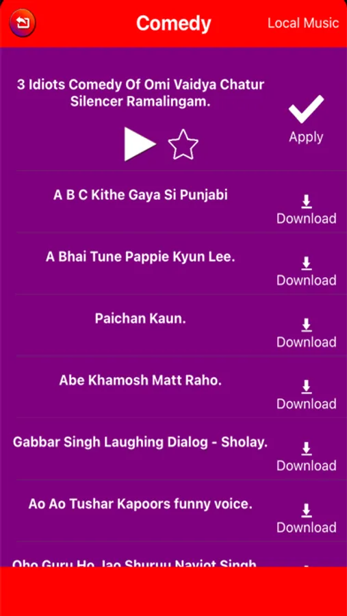 Video Fun includes lots of music category like Comedy , Romantic, Action , Emotional, Devotional, Patriotism etc, and user can also use song from their local system.