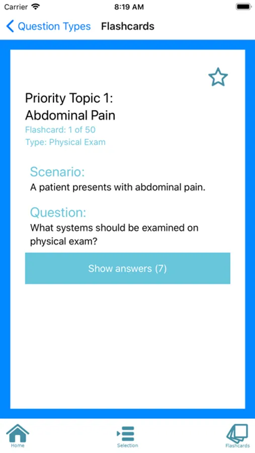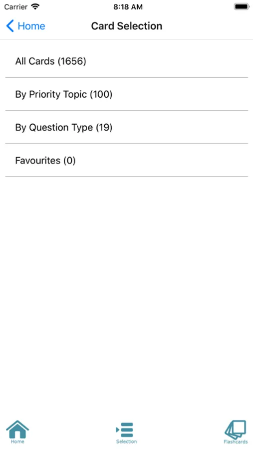 - Study by "Topic", "System", "Question Type", or "Favourites".