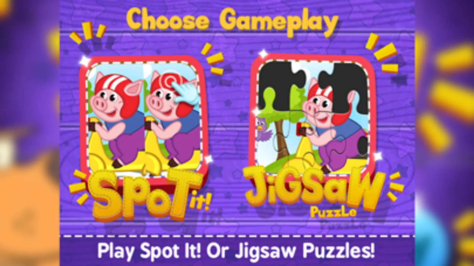 Welcome To Spot it: Find the Difference And Cartoon Kids Jigsaw Puzzles. ( One Player, Two Players And Play Against Computer ( vs Computer ) )