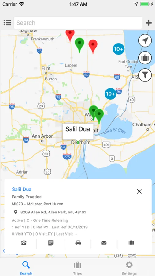 An interactive map allows the user to see Physicians in geographical context, and provides the means to filter data.