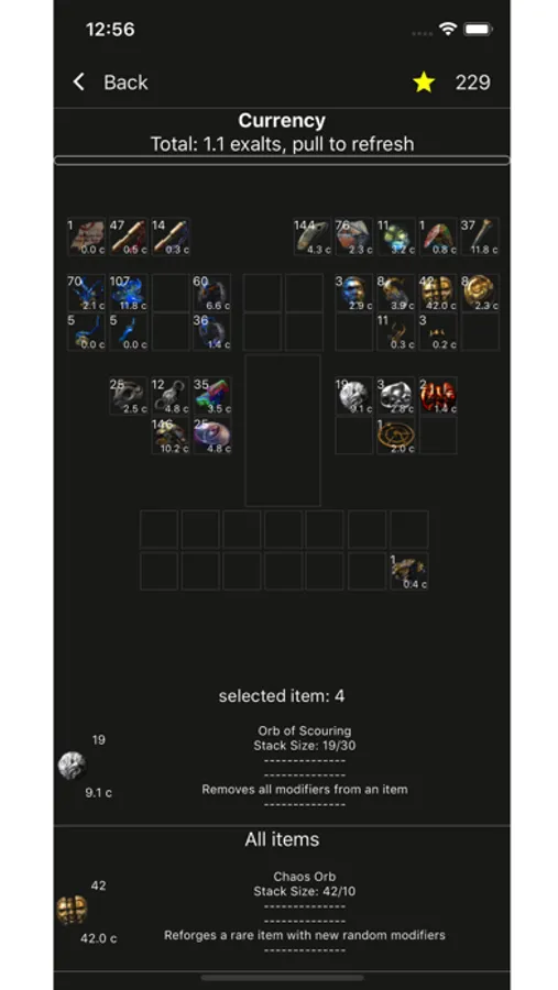 Check the price of all your items (uniques, rares, currency, gems, maps, etc.) in all stash tabs. Highlight the most valuable items according to the threshold you set.