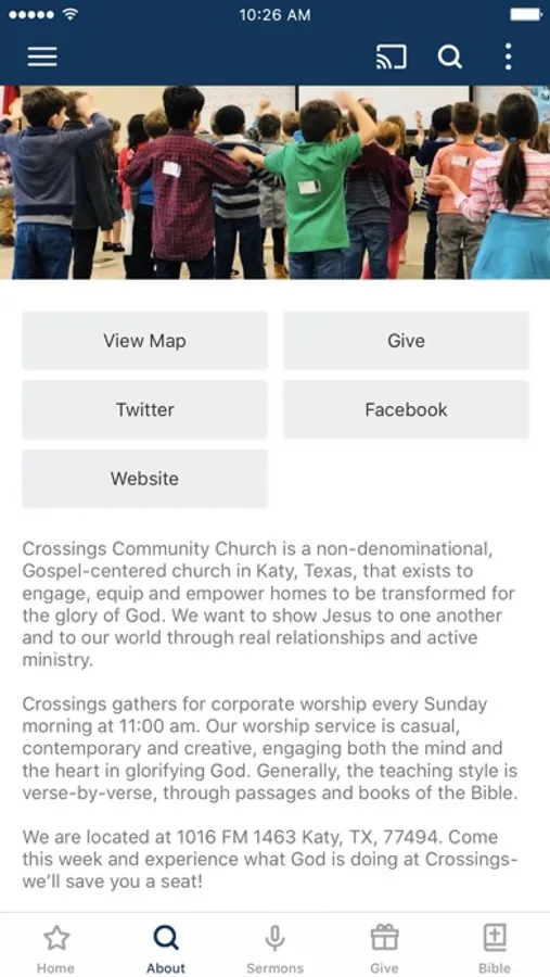 The Crossings Katy App was created with the Subsplash App Platform.
