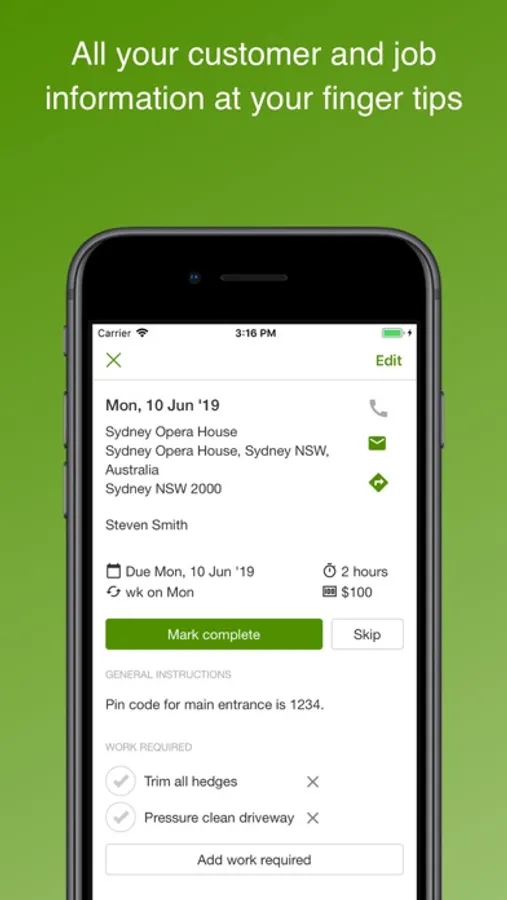 * Any issues that come up on the job can be logged and scheduled for the next visit