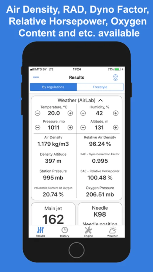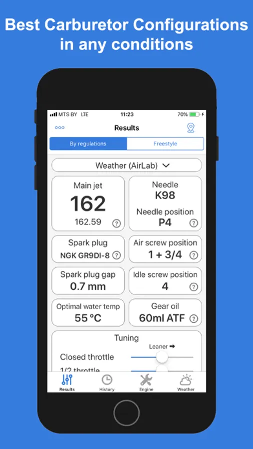 • Two different tuning modes: "By regulations" and "Freestyle"!