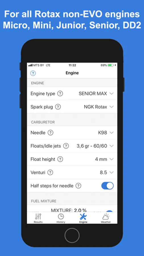 For Rotax Max EVO Engine please try our other app: Jetting Rotax Max Evo Kart.