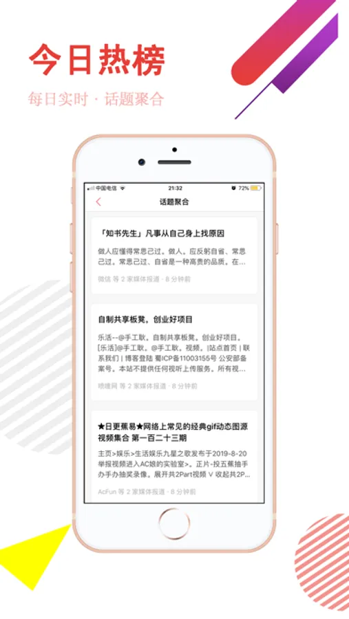 提供各站热榜聚合:微信、今日头条、百度、知乎、V2EX、微博、贴吧、豆瓣、天涯、虎扑、Github、抖音... 追踪全网热点、简单高效阅读。