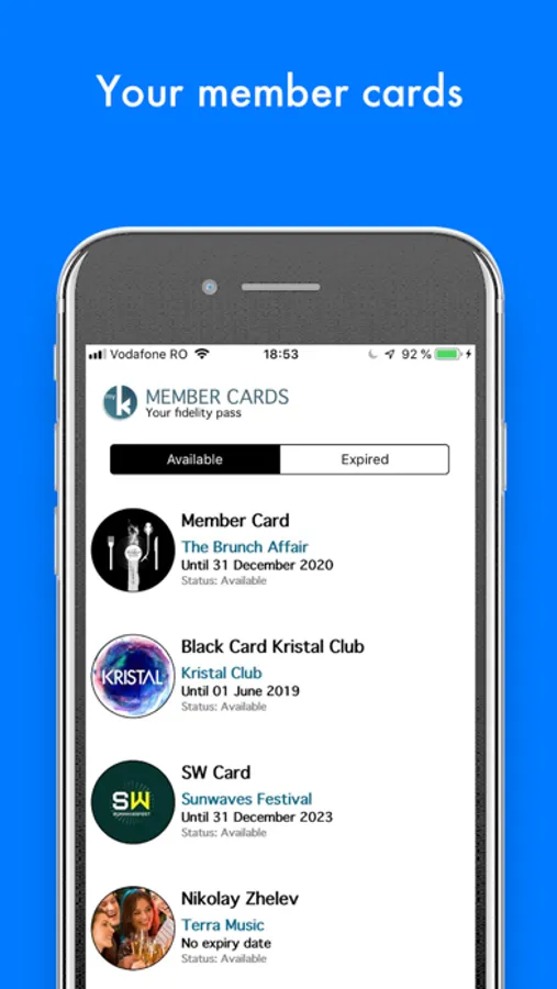 This mobile application offers you the possibility to carry in your mobile the digital tickets and member cards acquired via myk.ro. Just enter in Member cards or Tickets tab and show at the entrance the digital assets.