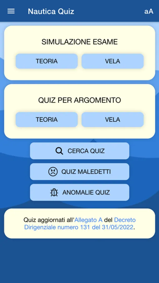 I quiz sono aggiornati secondo quanto riportato nell'allegato A del Decreto Dirigenziale numero 131 del 31/05/2022.