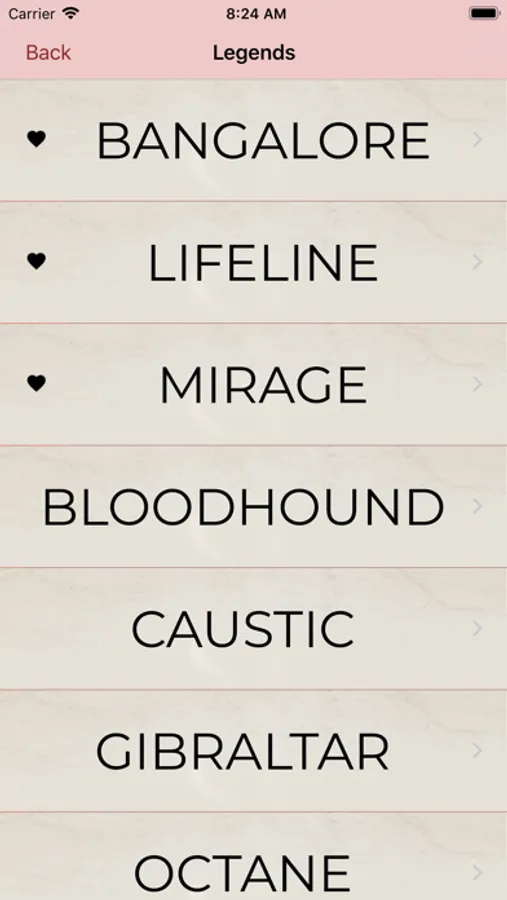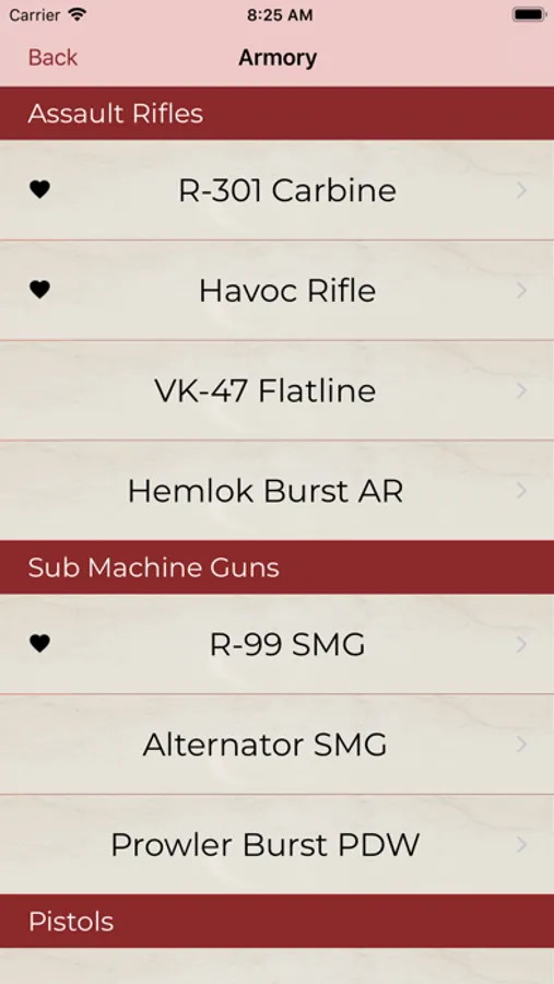 Mark your favorite Legends and Weapons as "Favorite" so you can easily see and access them from the top of their pages.