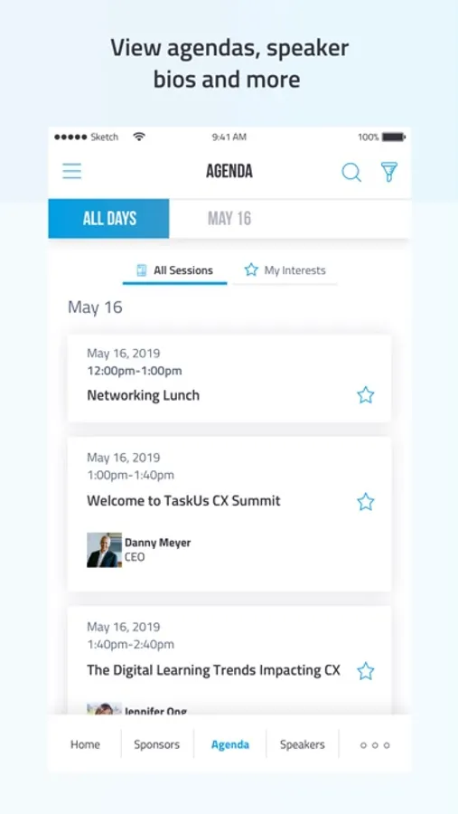 Download the TaskUS CX Summit mobile app to explore all things CX Summit! Browse and interact with the agenda, speaker list, sponsors, attendees, social media, polls and more!