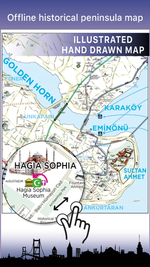 4- An additional offline and hand-drawn map of Istanbul's historical peninsula.
