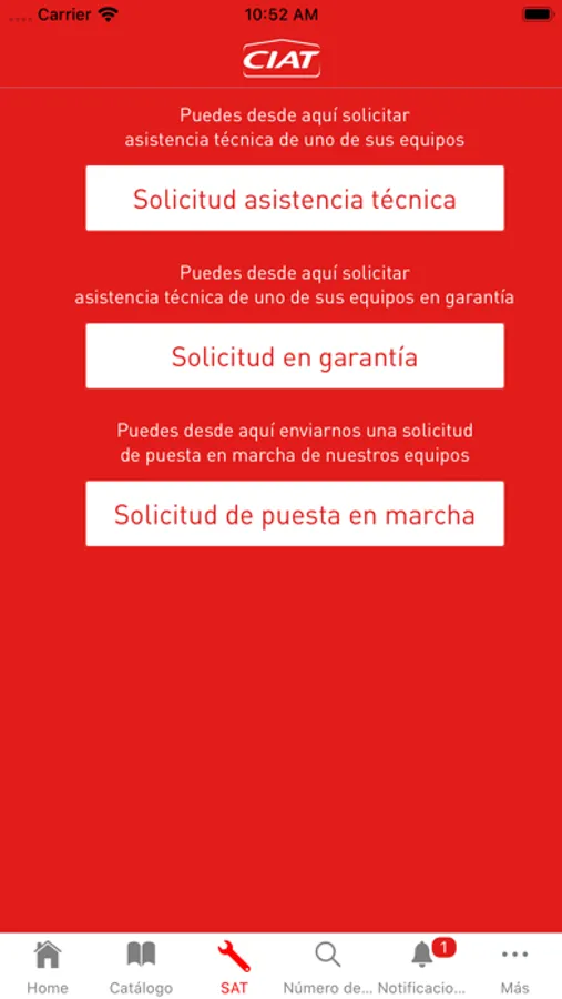 Con esta App podrás encontrar documentación técnica específica, enviar tus solicitudes al servicio técnico para puesta en marcha o reparación de equipos CIAT