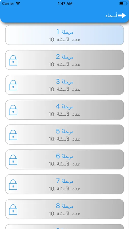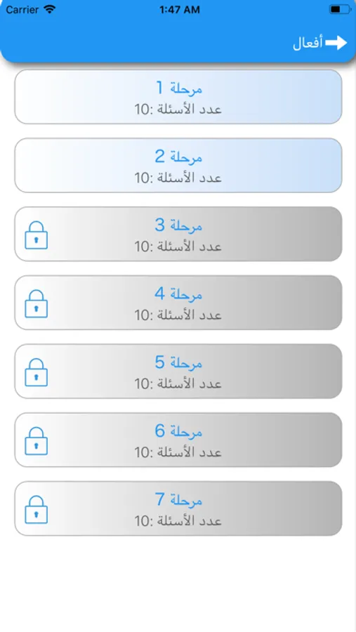 التطبيق فيها اسماء وصفات وافعال كل واحدة مقسمة لوحدها افعال واسماء وصفات لحالها بطريقة مميزة جدااا