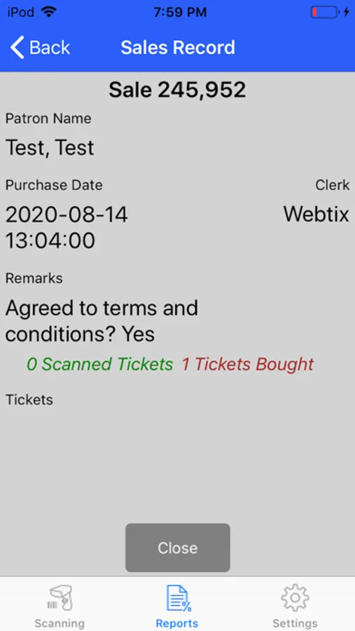 Providing contactless ticket scanning, working in conjunction with Wintix and Webitx, ScanTix provides a method to scan tickets at an event using portable hand-held (browser capable) scanners, tablets, laptops, or even bar-code scanning cell phones.