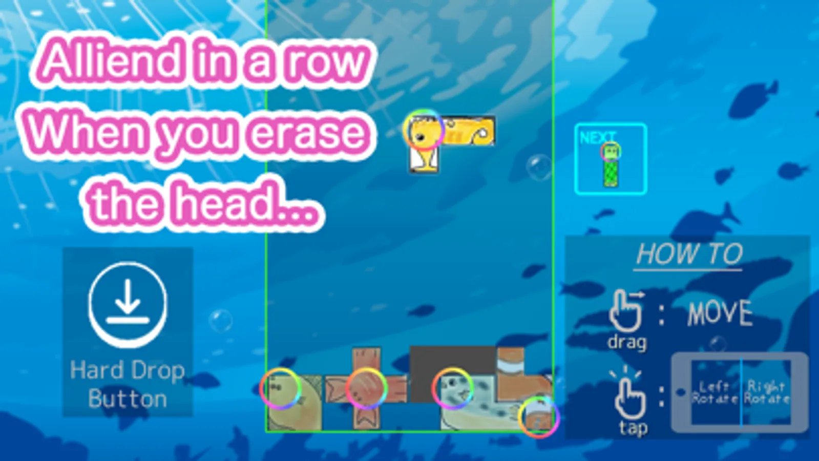 This is a falling block puzzle game with cute sea creatures motif.