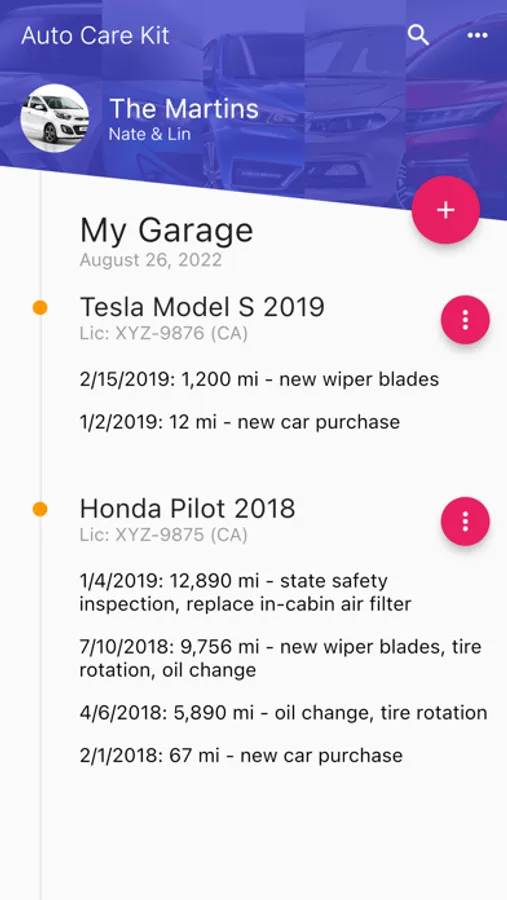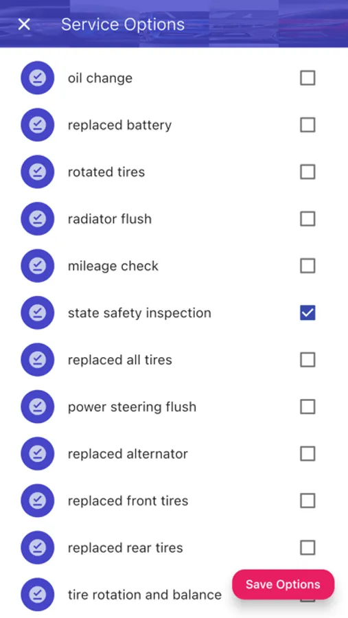 • Track oil changes, tire rotation, battery replacement, regular services, and more