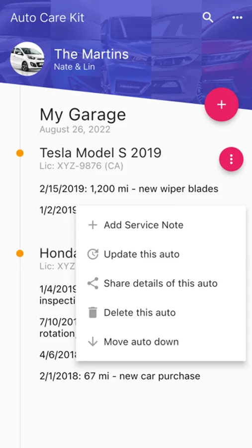 Auto Care Kit is where you take control of your auto maintenance records like oil change, tire rotation, brake replacement, etc. Manage the maintenance services performed on your autos quickly and easily.