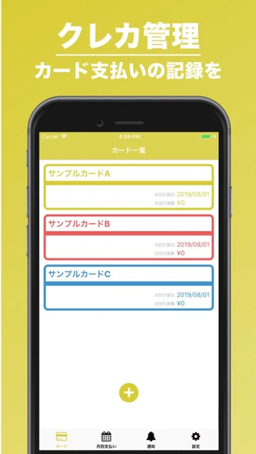 クレジットカード管理(クレカ管理)は、簡単に日々のクレジットカードでの支払いを管理できるアプリです。複数のカードをもっている場合でもまとめて管理することができますよ。