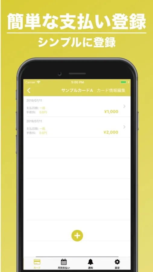 日々の支払いを登録する機能です。支払いをしたクレジットカードを選択して、いくら支払ったか、登録しておきましょう。自動で分割払いの手数料や引落日に合わせて計算してくれますよ。