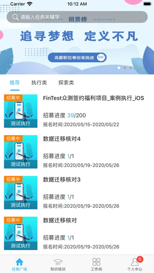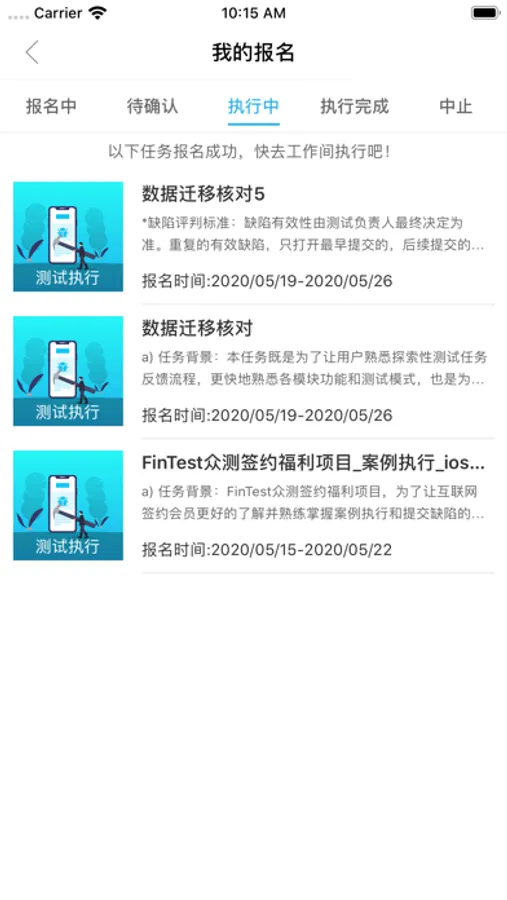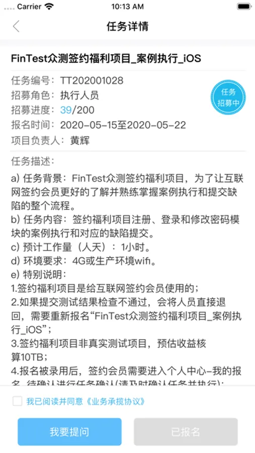 【任务广场】查阅测试任务信息,报名参加软件测试任务,找软件bug赚收益;